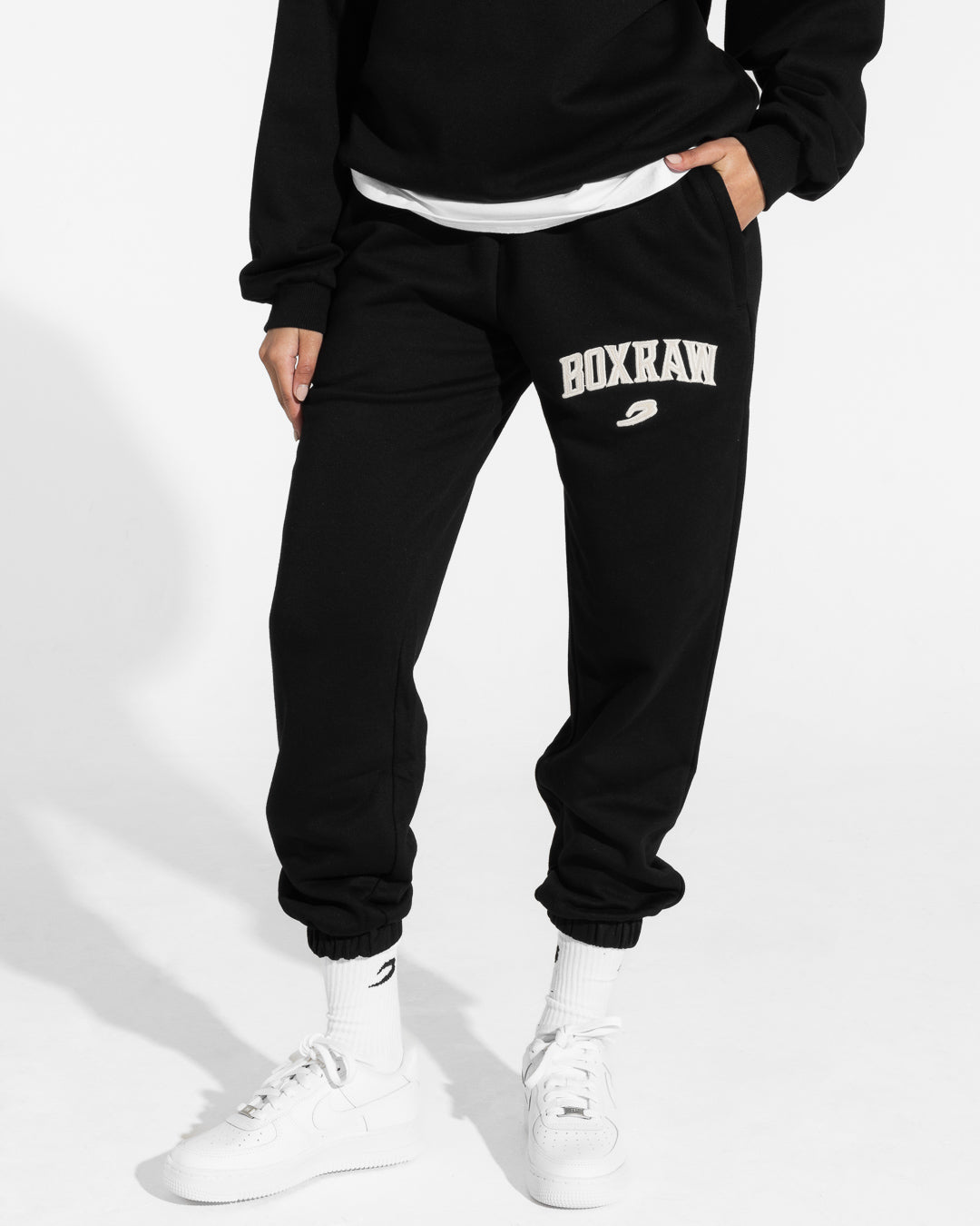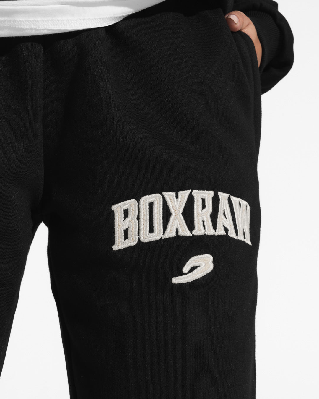 Inspired by the roots of MSG, the East Street Bottoms pay homage to the origins of the Mecca of Boxing. Made from a liveable and durable cotton blend, these bottoms offer a relaxed fit that will live with and for you. An applique BOXRAW Logo features on the leg and is complemented with side zipped pockets and our signature waistband patch sitting on a thick elasticated waistband.