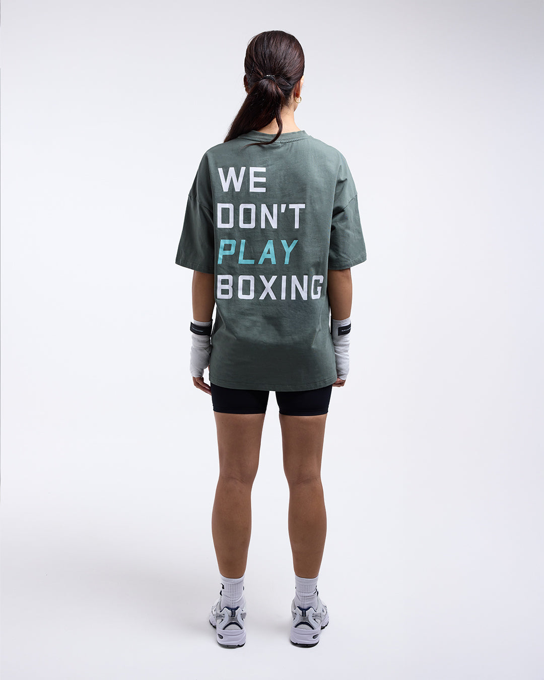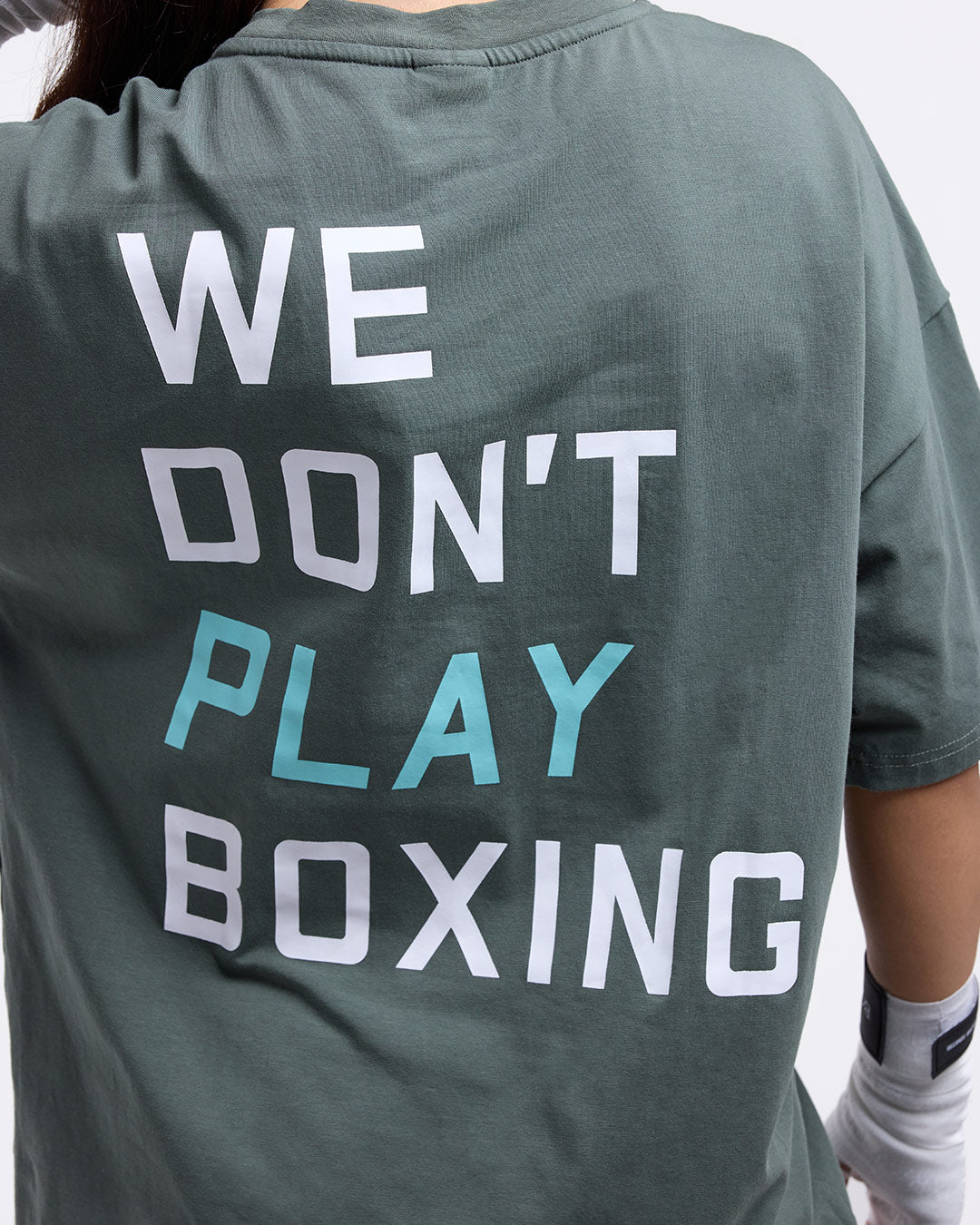 This oversized stretch cotton tee offers the perfect balance of breathability, structure and flow to accompany you through the rounds, round after round. Featuring our signature WE DON'T PLAY BOXING® slogan across the back, this tee serves to remind the world of a well-known fact within our community: You can play football, you can play basketball and you can play baseball but, you can't play boxing.